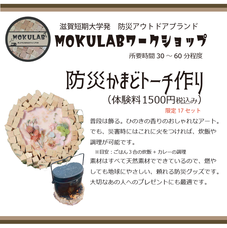 MOKULAB(モクラボ)は滋賀短期大学発の防災アウトドアブランドです。