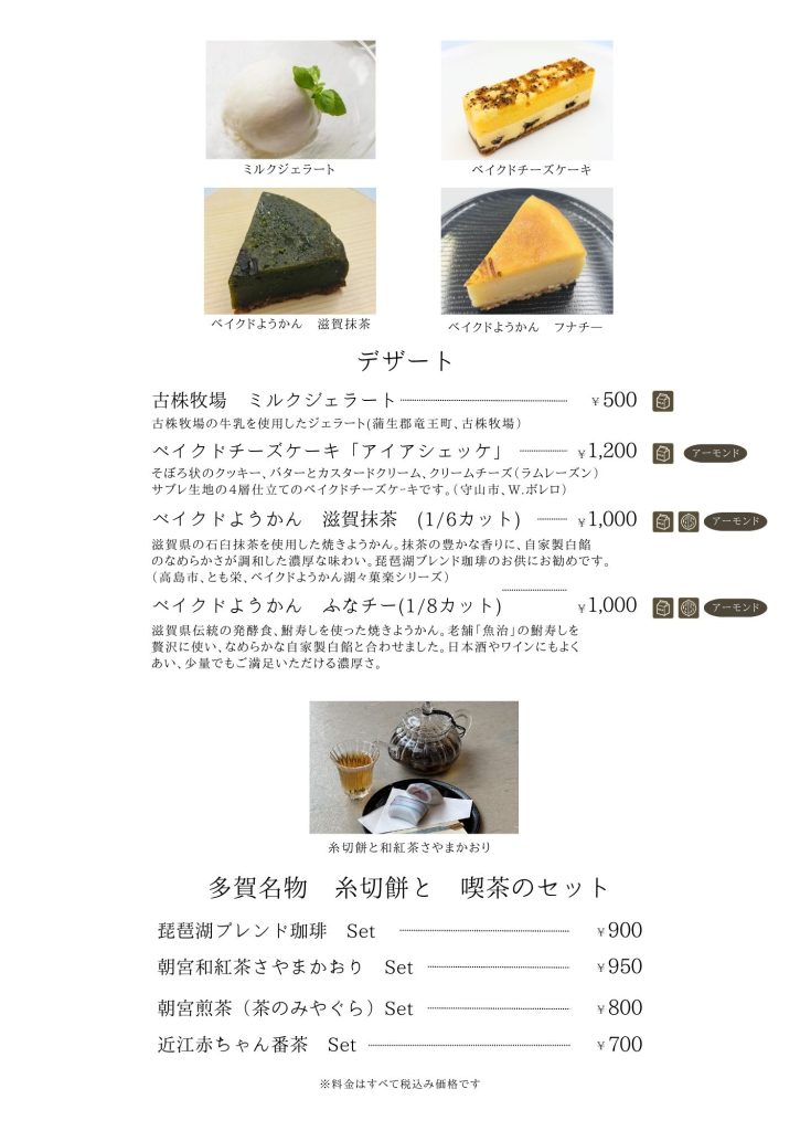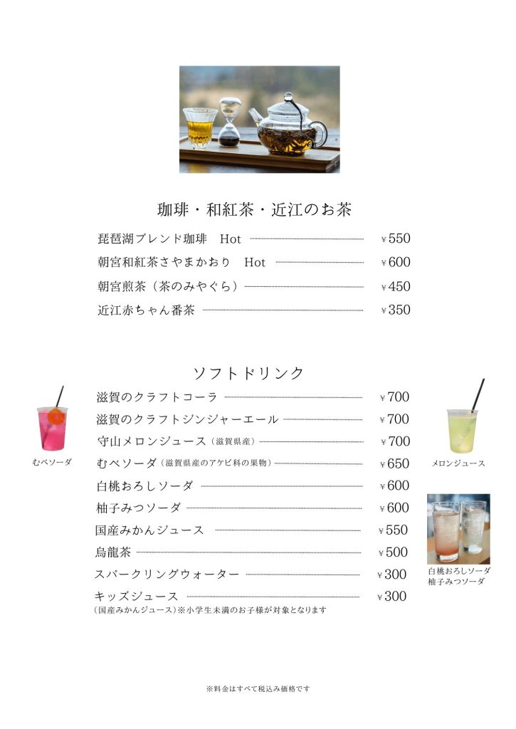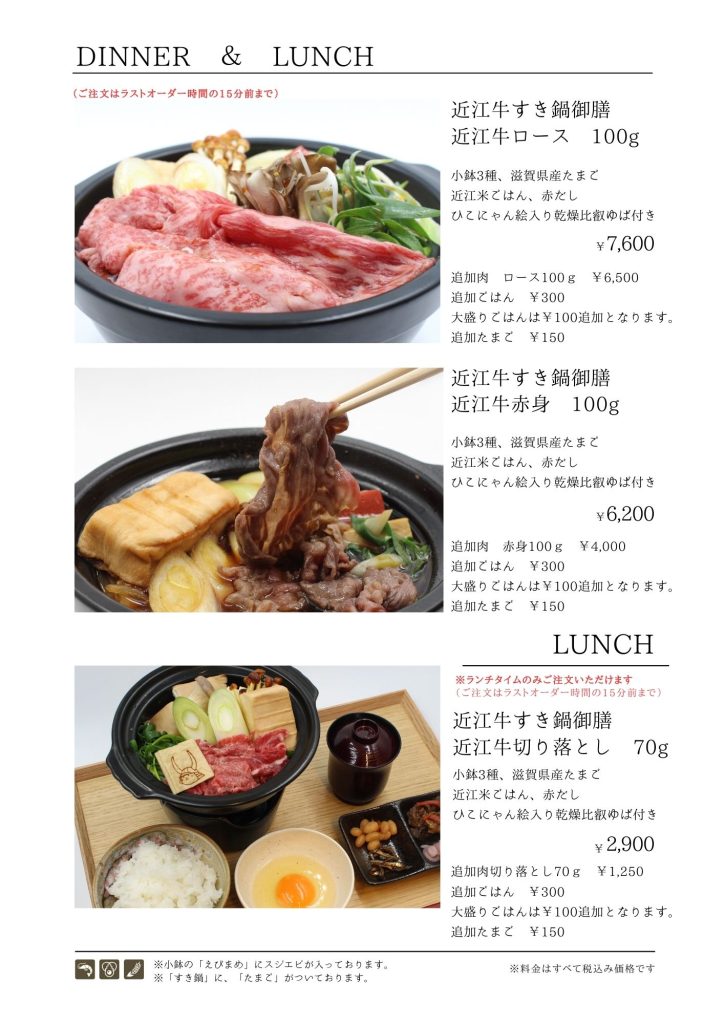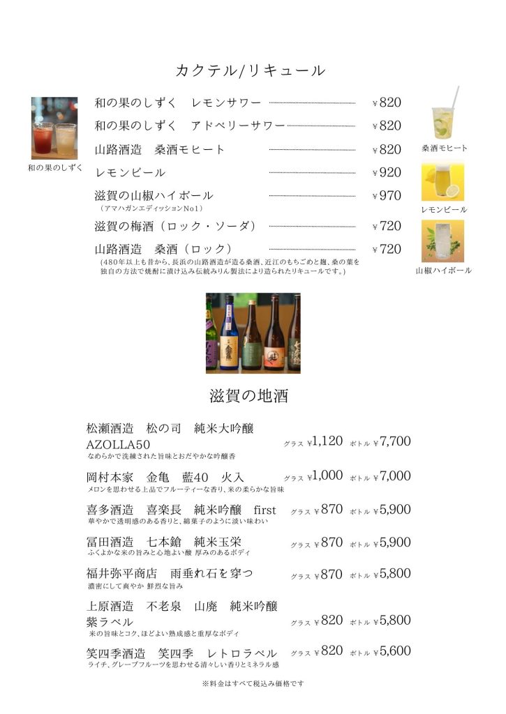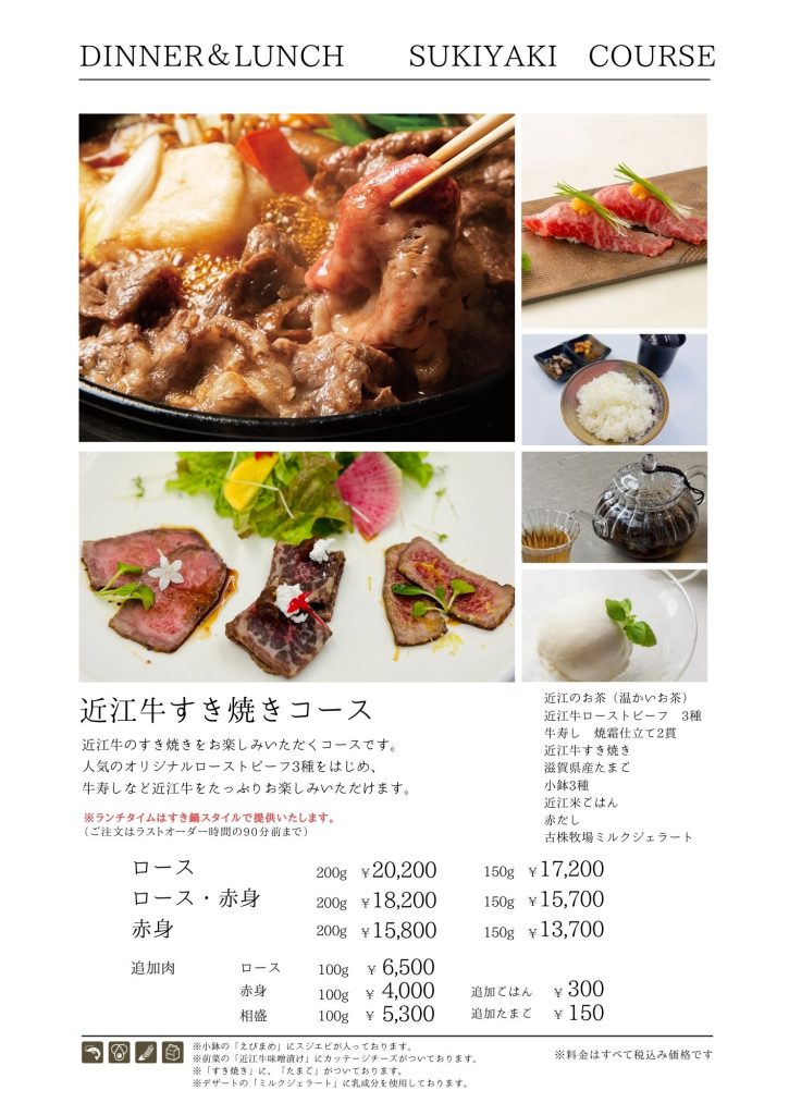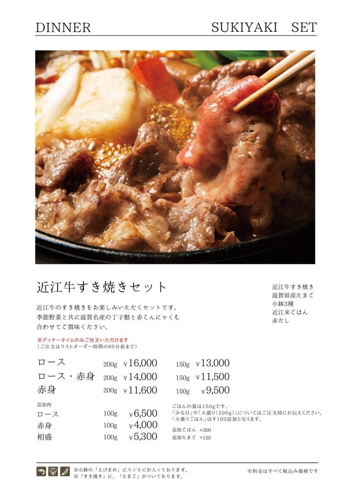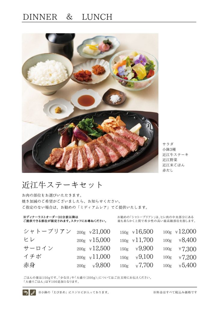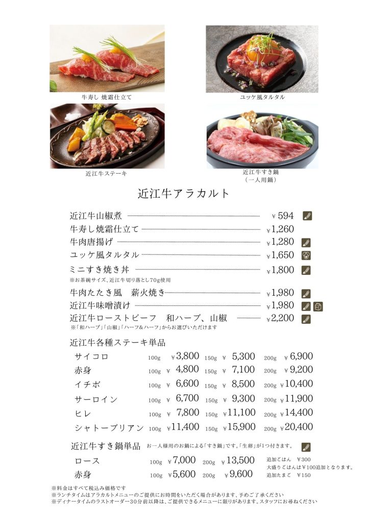 近江牛もりしま 寛閑観ここ滋賀【レストランメニュー・ドリンクメニュー】